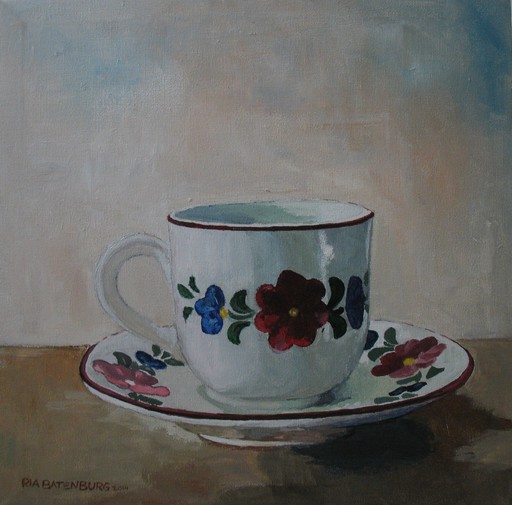 Het liefst schilder ik "gewone" dingen. Dingen waarvan je niet in de gaten hebt hoe mooi ze kunnen zijn. Dat kunnen dingen uit de keuken zijn, maar ook bomen en planten. Regelmatig haal ik voorwerpen uit de kringloopwinkel. Die schik ik dan zo, dat er een leuke compositie ontstaat. Daarna kan het schilderen beginnen. Ik schilder niet te verfijnd. Het is leuk als je toch nog kan zien dat de afbeelding geschilderd is en niet gefotografeerd.